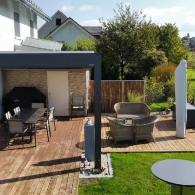 Ein Lamellendach lässt sich flexibel an verschiedene Situationen anpassen. Egal, ob Sie eine Lösung für eine freistehende Pergola suchen oder eine Terrassenüberdachung direkt an Ihrem Haus wünschen – unsere Produkte und Montageservices bieten eine maßgeschneiderte Lösung für Ihre Bedürfnisse.