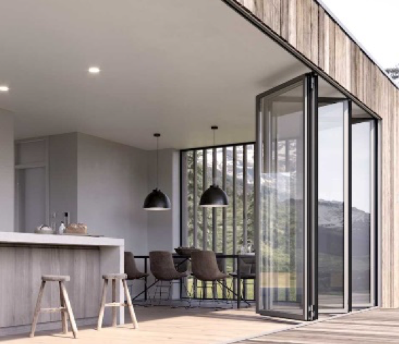Eine Glas-Faltwand schafft fliessende Übergänge